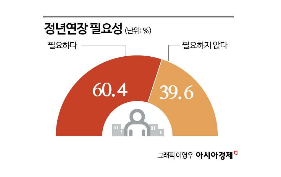 과제의 중요성은 국내 500대 기업들을 대상으로 한 설문조사에서도 확인된다. 12일 아시아경제가 공개한 '정년연장(65세) 관련 기업 현황 및 제도 수요조사' 결과에 따르면 국내 주요 기업 10곳 중 6곳은 정년퇴직 후에도 고령자를 계속 고용해야 한다고 공감했다. 방법을 떠나 '필요하다'는 입장에는 절반 이상이 동의한 것이다. 이 조사는 시장조사 전문기관 모노리서치에 의뢰해 지난 4월24일부터 29일까지 국내 매출 상위 500대 기업 중 설문에 응한 101개사를 대상으로 실시됐다.