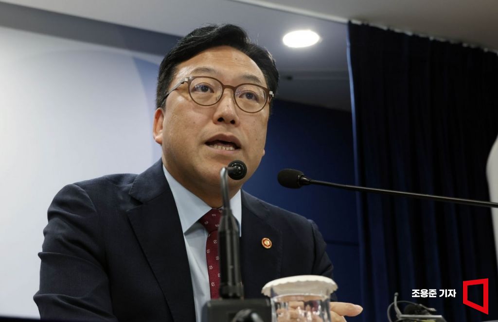 김병환 금융위원장이 7일 서울 종로구 정부서울청사에서 열린 금융위 출입기자단 정례 간담회에 참석, 발언하고 있다.