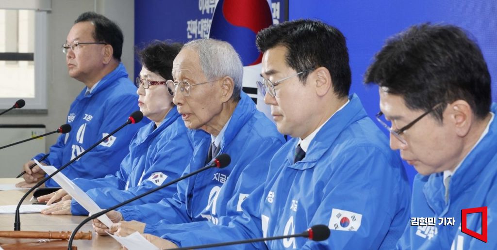 윤여준 더불어민주당 상임 총괄선대위원장이 7일 서울 여의도 중앙당사에서 열린 중앙선거대책위원회의에서 발언하고 있다.