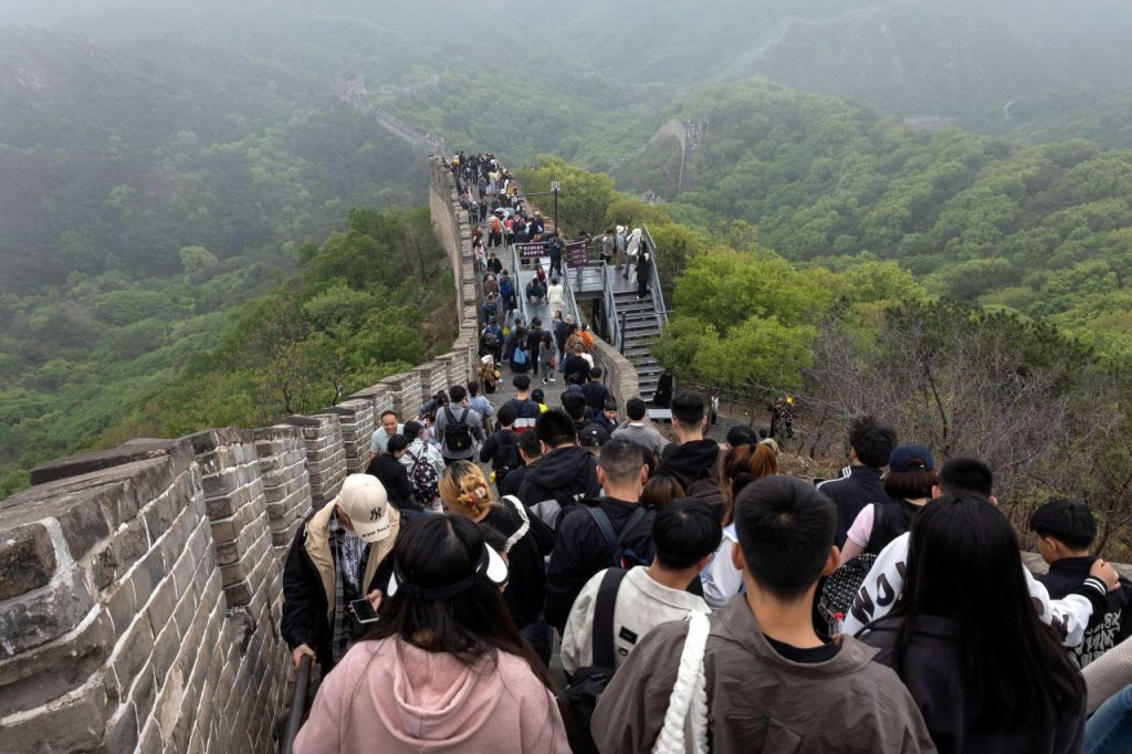 5월 5일 중국 베이징 인근 만리장성 구간을 방문한 관광객들. EPA 연합뉴스
