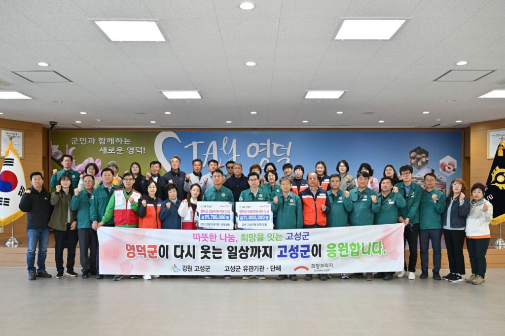 먼저 △강원 고성군청이 7078만원 △대구한의대 교직원 일동이 2000만원 △울진군 죽변면민 일동이 1474만원 △재포 강구면 향우회가 1050만원 △미주정밀 이중재 대표이사와 기독교대한감리회, 한국아스콘공업협동조합 연합회 일동이 각각 1000만원을 기탁했다.