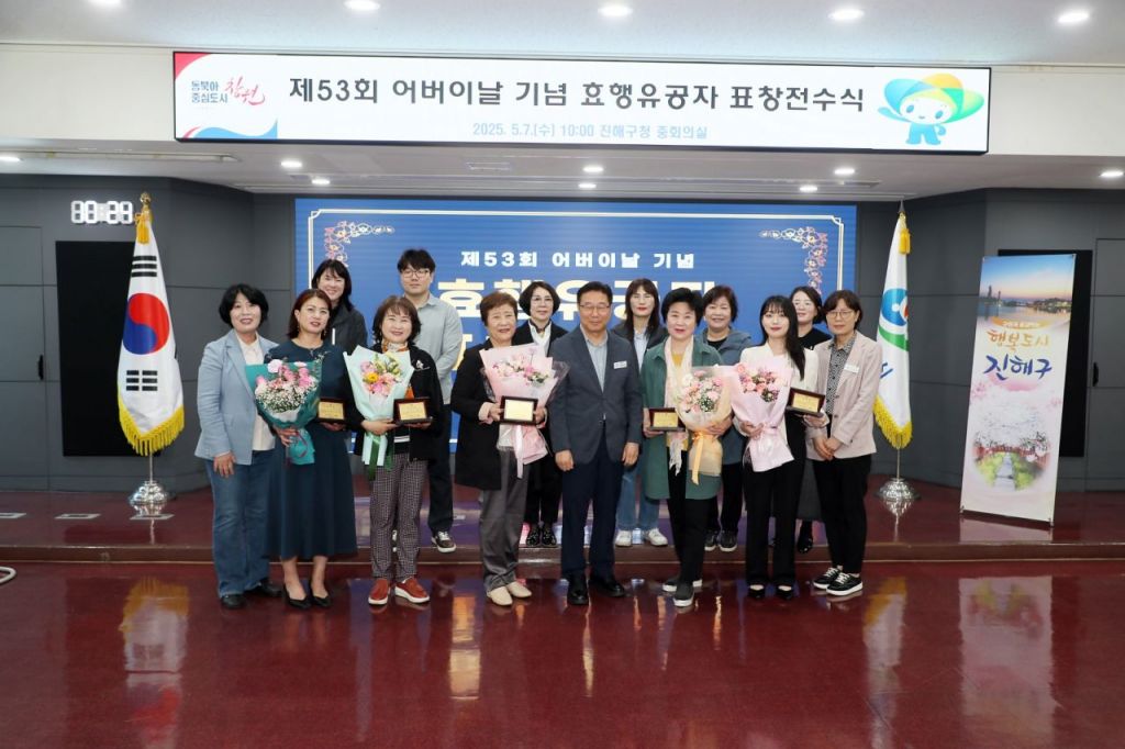 경남 창원특례시 진해구는 7일 제53회 어버이날을 맞아 『효행유공자 표창 전수식』을 열고 지역사회의 효 실천과 경로효친 문화 확산에 이바지한 주민과 단체에 대한 감사와 존경의 뜻을 전했다.