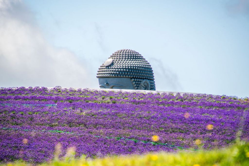 타다오가 생각한 아이디어는 다음과 같았다. '이미 있는 불상을 언덕으로 덮자' '언덕을 유럽의 노트르담 드 세낭크 수도원처럼 라벤더밭으로 덮어버리자' '거대한 머리가 빼꼼히 드러나게 하자' '물이 있는 공간을 우회해서 걷게 하되, 걷는 동안 마음을 정화하게 하자' '동굴 같은 진입로에 향을 피워 멀리 보이는 불상으로 향하게 하자' '아래서 불상을 쳐다보면 동그란 하늘이 아우라로 보이게 하자.'