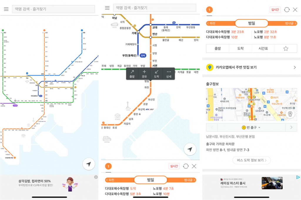부산도시철도 실시간 열차 정보를 네이버 지도와 카카오지하철, 카카오버스 앱에서도 확인할 수 있게 됐다.
