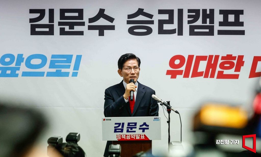 김문수 국민의힘 대선후보가 8일 서울 여의도 선거캠프에서 긴급 기자회견을 하고 있다.