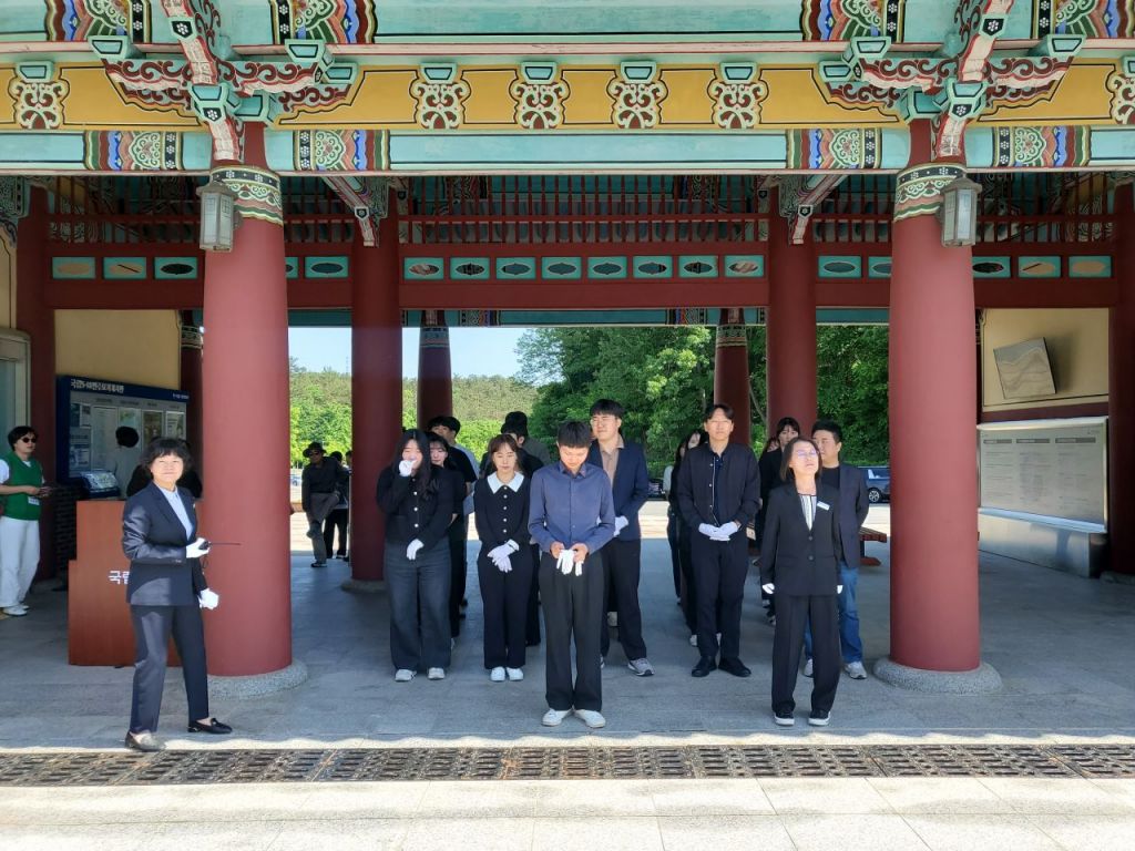 광주 북구 청년간부회의 소속 공직자들이 국립 5·18 민주묘지를 참배하기 위해 입장하고 있다. 북구 제공