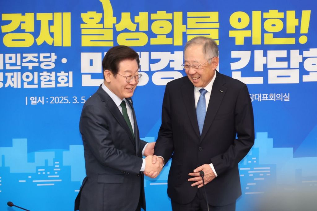 류진 한국경제인협회 회장은 8일 서울 중구 대한상공회의소에서 이재명 더불어민주당 대선후보와 경제5단체장의 정책간담회에서 "우리 경제가 벼랑 끝에 서 있다"면서 "문제는 일시적 현상이 아니라 산업경쟁력 약화라는 점"이라며 이같이 말했다. 류 회장은 "그 첫째 요인은 새로운 성장동력의 부재, 둘째는 주력산업 노후화"라면서 "미국·중국이 신산업을 육성해온 지난 20년간 한국 제조업은 성장판이 닫혀버렸다. 대부분의 주력산업이 중국의 추월로 위기에 빠졌고, 석유화학과 철강은 존폐의 갈림길에 처했다"고 역설했다. 그러면서 최우선 과제로 국가 주도의 신(新)성장동력 창출을 꼽으며, 관련 분야로 항공우주, 로봇, 바이오, 미래형선박, 방위산업 등을 언급했다.