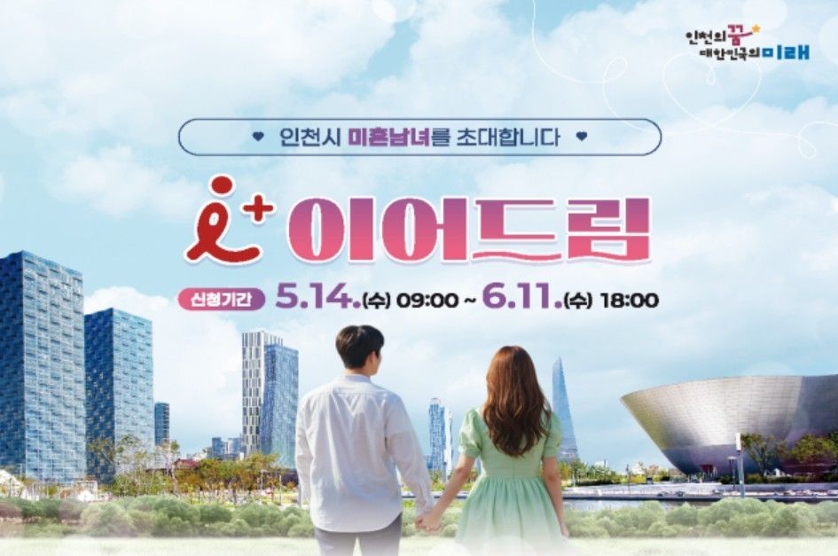 인천시가 미혼남녀의 건강한 만남을 돕기 위해 오는 14일부터 다음 달 11일까지 '아이(i) 플러스 이어드림' 커플축제 참가자를 모집한다.