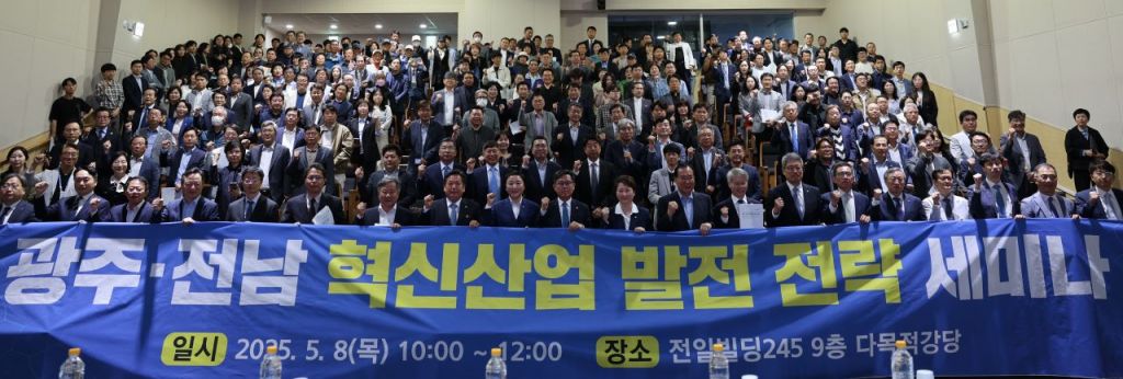 더불어민주당 미래경제성장전략위원회는 8일 광주 동구 전일빌딩245 9층 다목적강당에서 광주·전남의 미래 성장동력을 발굴하고 지역산업 혁신 방향을 모색하는 '광주·전남 혁신산업 발전 전략 세미나'를 개최했다. 안도걸 의원실 제공