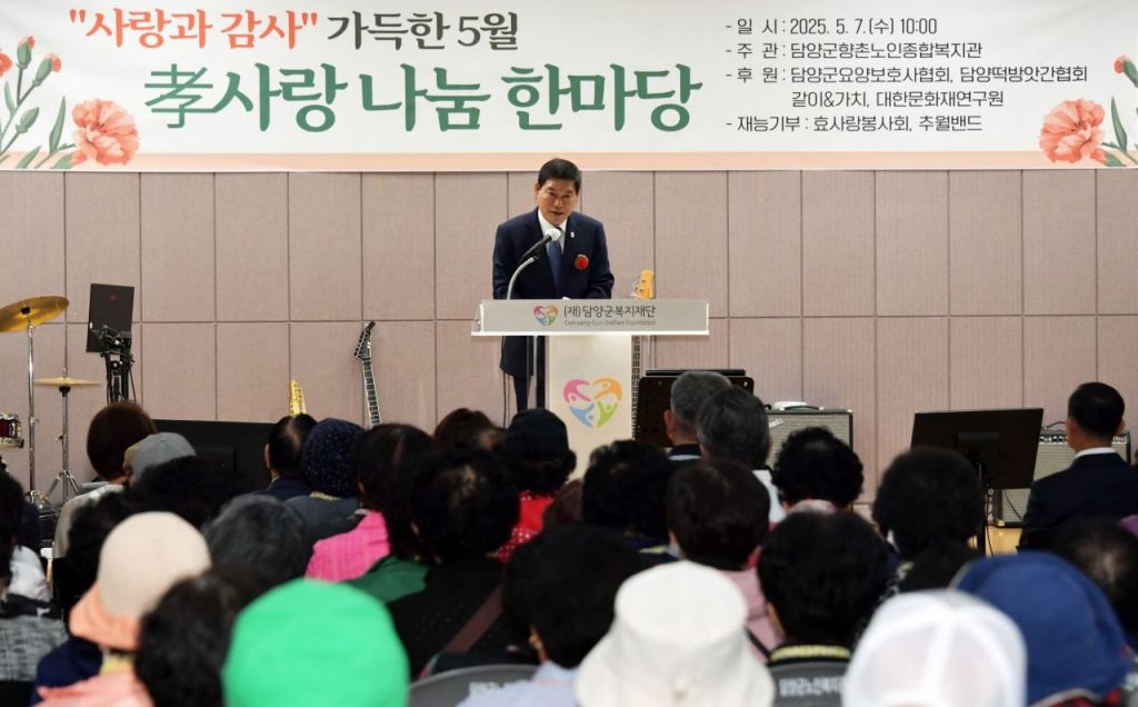 전남 담양군이 5월 가정의달을 맞아 지역 어르신들을 위한 따뜻한 시간을 마련했다. 군은 지난 7일 향촌노인종합복지관에서 400여명의 어르신을 모시고 '효사랑 나눔 한마당' 행사를 열었다고 8일 밝혔다.