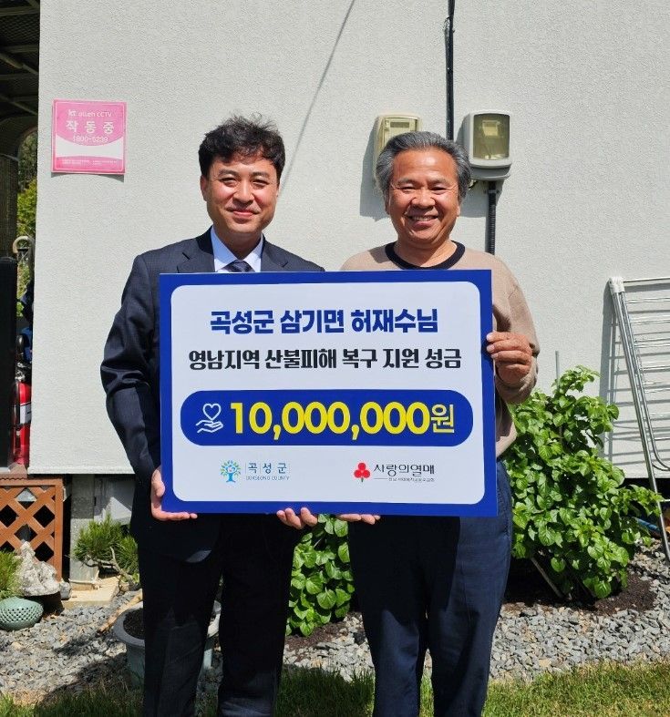 전남사회복지공동모금회(이하 전남 사랑의열매)는 곡성군 삼기면 허재수 기부자가 곡성군을 통해 영남지역 산불피해 복구 성금 1,000만 원을 기탁했다고 8일 밝혔다.