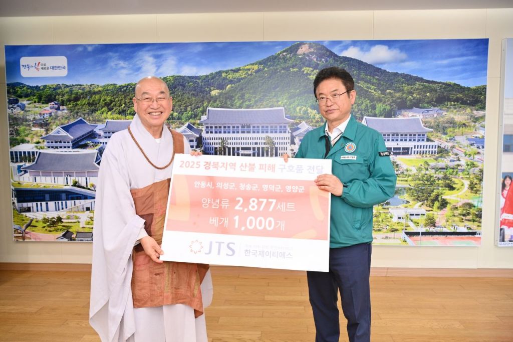 경북도는 8일 도지사 접견실에서 한국JTS(Join Together Society) 이사장 법륜스님으로부터 산불피해 도민을 위한 1억원 상당의 생활용품을 전달받았다.