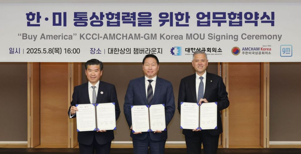 체결식에는 최태원 대한상의 회장, 제임스 김 암참 회장, 헥터 비자레알 한국GM 사장, 헤일리 선드 주한미국대사관 상무관 등이 참석했다.