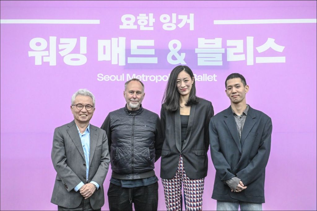 안호상 세종문화회관 사장, 요한 잉거 안무가, 이상은 영국국립발레단 리드수석, 서울시발레단 시즌무용수 이정우(왼쪽부터)가 기념사진을 찍고 있다. [사진 제공= 세종문화회관]