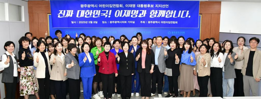 광주시 어린이집연합회 대표단 1,671인이 8일 오후 광주시의회 3층 시민소통실에서 기자회견을 열고, 더불어민주당 이재명 대통령 후보 지지를 공식 선언했다.