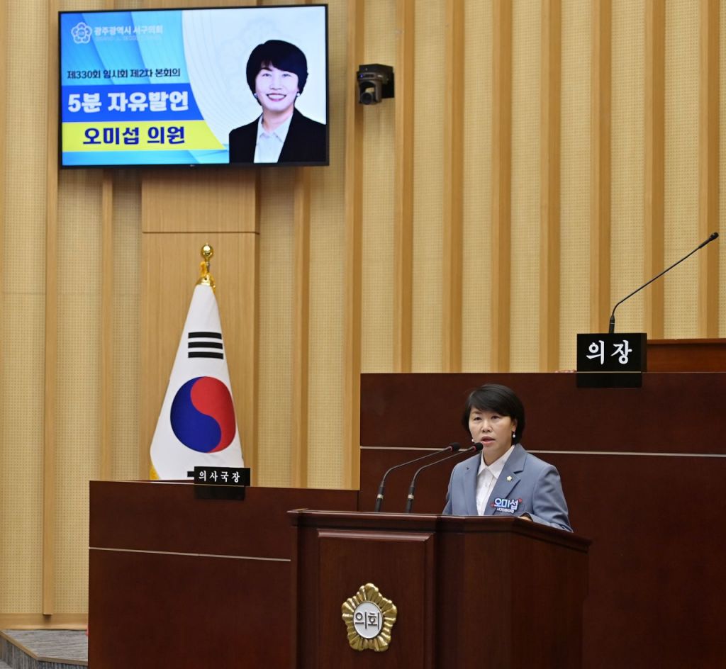 광주 서구의회 오미섭 의원이 지난 8일 제330회 임시회 제2차 본회의에서 '5분 자유발언'을 통해 서창 파크골프장 조성의 원활한 추진을 위해 빈틈없는 계획과 예산 등을 당부했다.