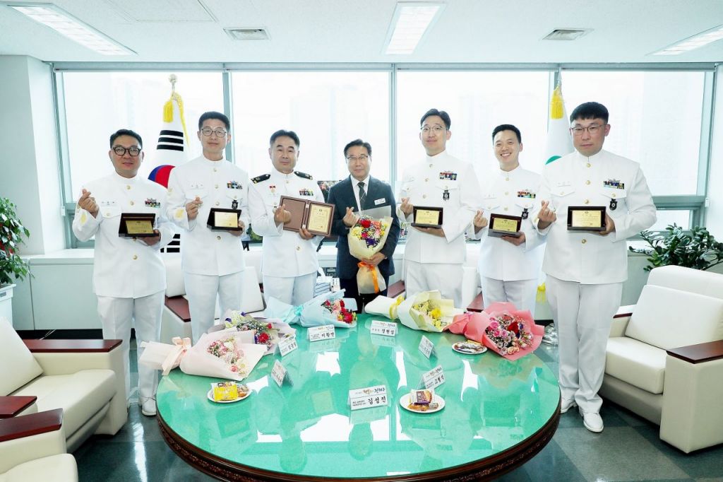 경남 창원특례시 진해구는 구청 구청장집무실에서 지역사회를 위한 꾸준한 재능기부로 봉사활동을 펼쳐온 해군 교육사령부 기술행정학교 기관학부 전기학과 교관 6명과 기술행정학교(단체)에 대해 유공 표창 수여식을 가졌다.