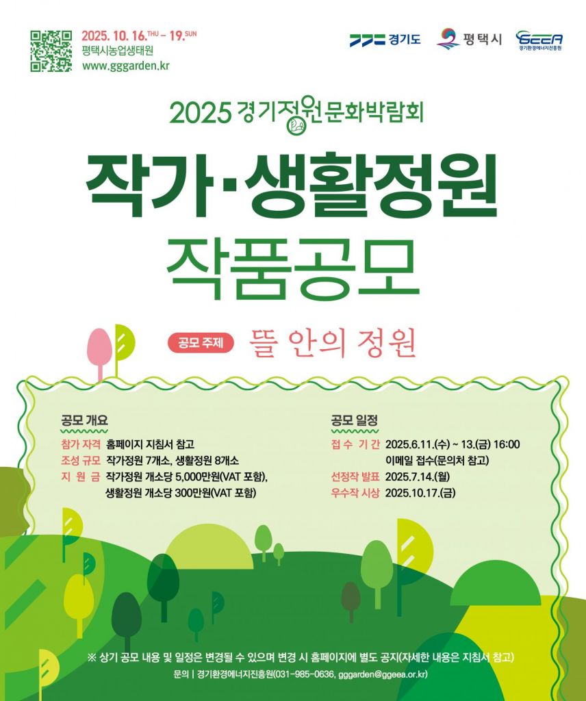 이정수 경기도 정원산업과장은 "경기정원문화박람회는 지역의 정원 기반시설(인프라)을 확장하고, 도민 녹색복지를 확대하는 의미 있는 문화행사"라며 "올해 공모전이 평택의 자연과 조화를 이루며, 공공성과 예술성, 지속가능성을 아우르는 정원문화의 새로운 모델이 되기를 기대한다"고 말했다.