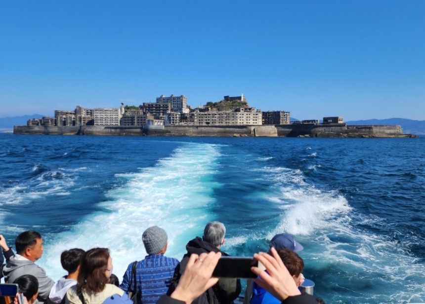 유람선에서 군함도를 바라보는 관광객들.서경덕 교수 SNS