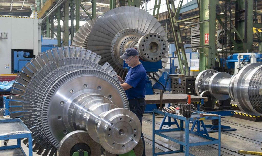지난 9일(현지시간) 체코 플젠에 위치한 두산스토다파워 공장에서 작업자들이 독일 폐열발전소로 납품되는 터빈을 조립하고 있다.(사진= 산업부 공동취재단)