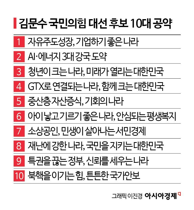 김문수 국민의힘 대선후보는 10일 1호 공약인 '기업하기 좋은 나라'를 포함한 10대 공약을 중앙선거관리위원회에 제출했다.