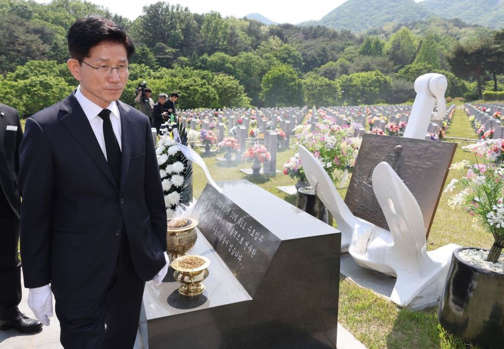 김 후보는 이날 국가사회공헌자·제2연평해전 및 연평도 포격전 전사자·천안함 46 용사 묘역·한준호 준위 묘역 등을 찾아 참배했다. 김 위원장과 수행단장인 이만희 의원, 강승규·박덕흠·엄태영·이종배 의원 등이 동행했다.