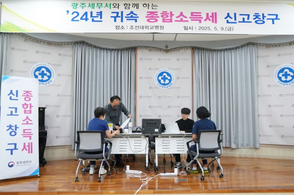조선대병원이 광주세무서와 협력해 교직원들의 편의를 위한 종합소득세 신고 지원창구를 열었다. 조선대병원 제공