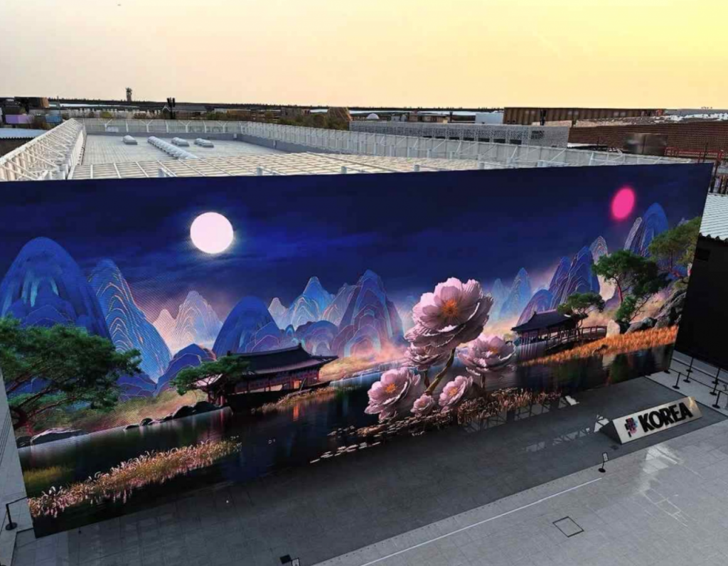 국가유산의 가치를 현대적으로 해석한 미디어아트는 한국관에서 만날 수 있다. 가로 27m, 세로 10m의 초대형 발광 다이오드(LED) 화면을 통해 십장생, 일월오봉도, 한산모시, 인왕제색도 등을 생동감 있게 전달한다.