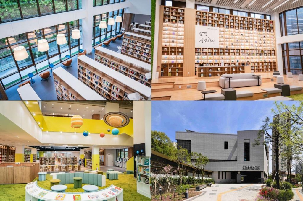 강동숲속도서관 내외부 모습. 강동구 제공.