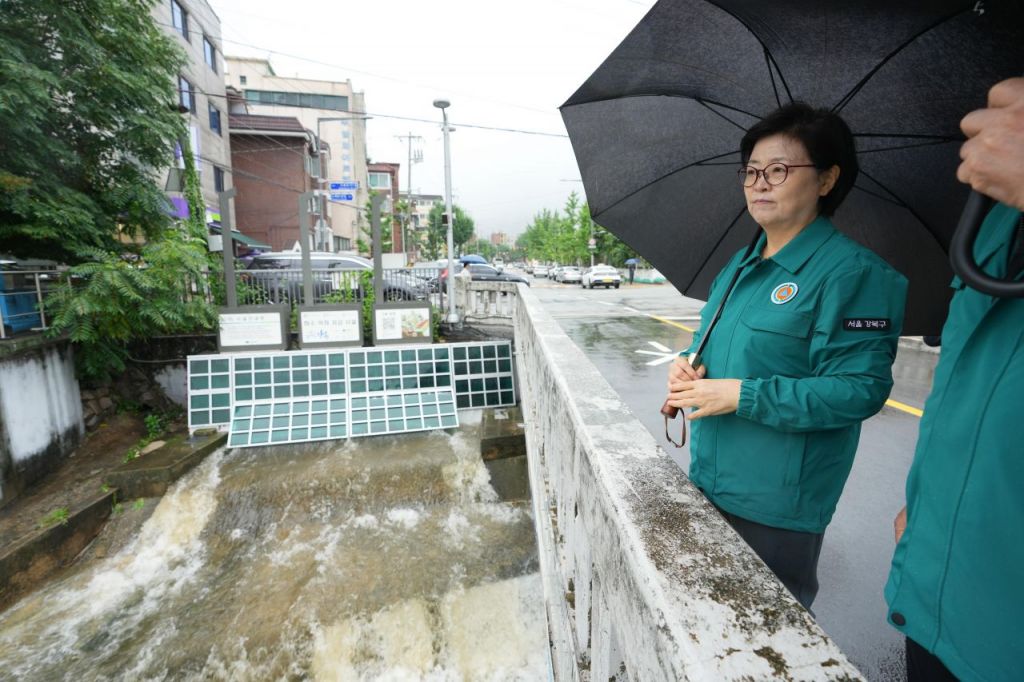 지난해 풍수해 대비 현황을 점검하는 이순희 강북구청장. 강북구 제공.