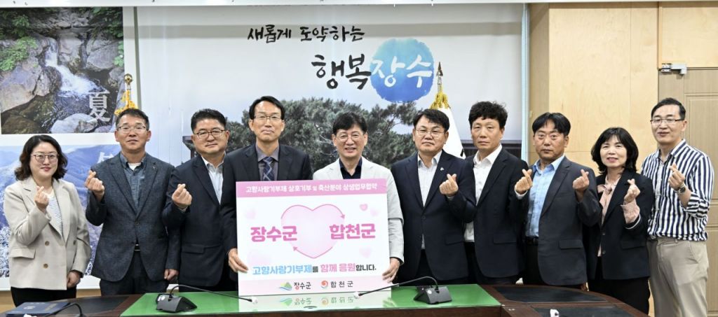 이번 협약은 양 지자체 축산부서인 합천군 축산과와 장수군 축산위생과 간의 고향 사랑 기부금 상호 교차에 대한 논의에서 출발했고, 축산부서라는 공통점을 바탕으로 더 나은 발전과 성장을 위해 기관 간 공식 협약으로 이어지게 된 것이다.
