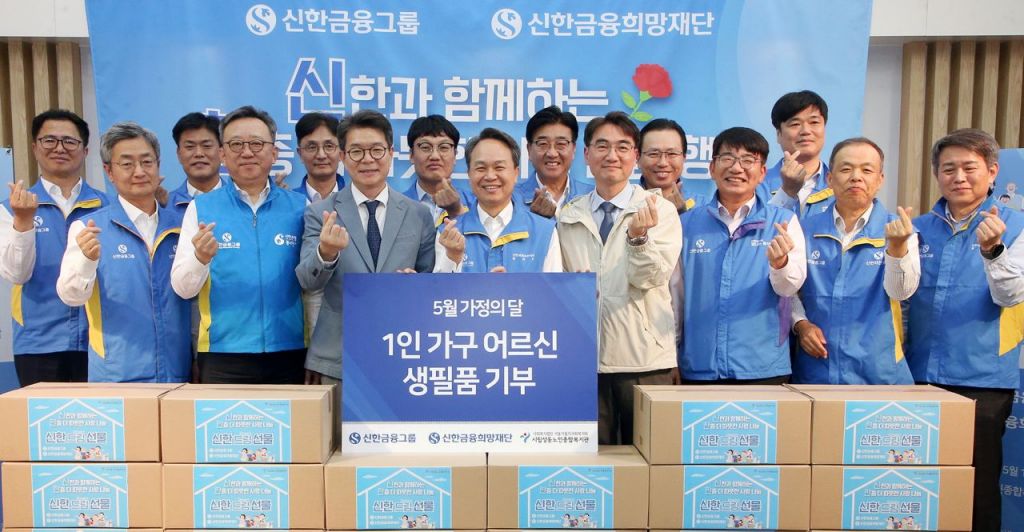 이날 신한금융그룹 경영진과 정원오 성동구청장 등 봉사자 30여명은 성동구 취약계층 1인 가구 어르신 가정을 방문해 직접 제작한 생필품 세트 330여개를 전달했다. 앞서 이들은 여름 이불과 손 압력기, 보양 삼계탕 등으로 구성된 생필품 세트를 제작했다.