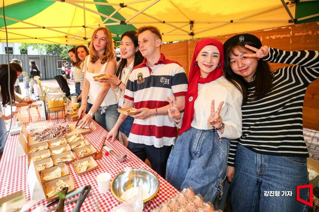 13일 서울 성북구 고려대학교 민주광장에서 열린 '2025학년도 1학기 외국인 학생-교원 축제'에 참가한 외국인 학생들이 축제를 즐기고 있다.