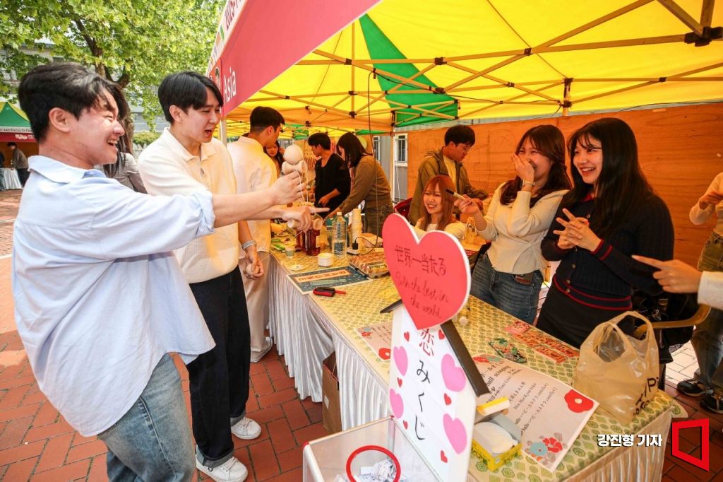 13일 서울 성북구 고려대학교 민주광장에서 열린 '2025학년도 1학기 외국인 학생-교원 축제'에 참가한 외국인 학생들이 축제를 즐기고 있다.