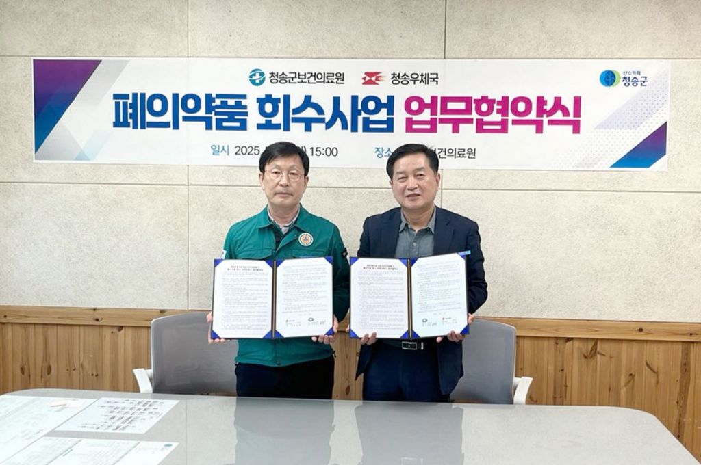 협약에 따라 청송우체국은 지역 내 우체통을 활용해 주민들이 손쉽게 폐의약품을 반납할 수 있도록 내부 수거 절차를 마련하고, 수거된 약품의 보관과 배송 과정을 안전하게 운영할 계획이다.