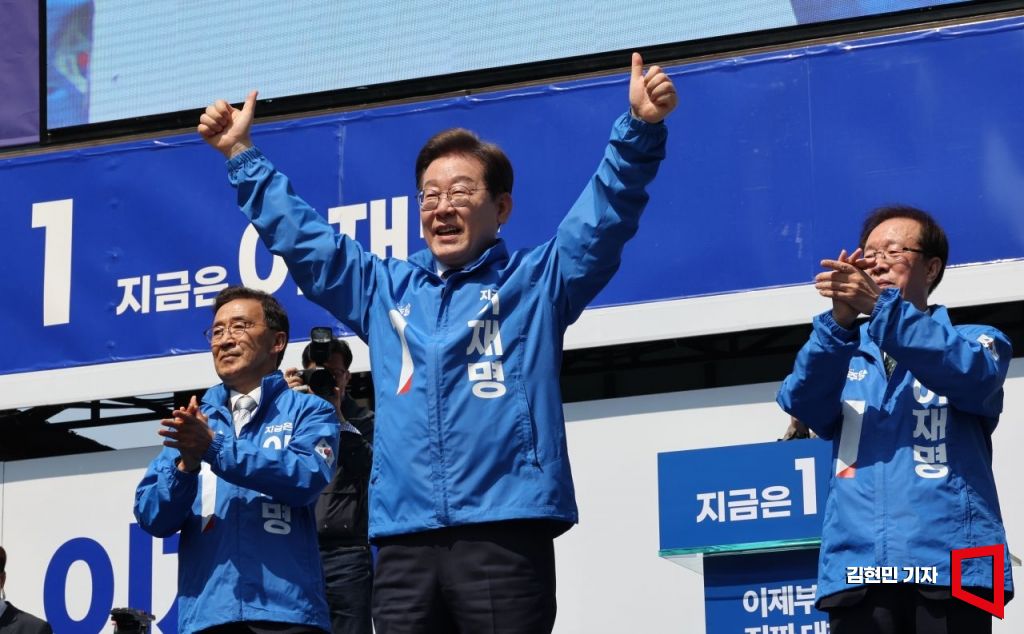이재명 캠프는 후보 중에 가장 많은 18곡을 선거 송으로 사용하고 있다. 로제의 리메이크로 역주행 중인 윤수일의 히트곡 '아파트'를 비롯해 '붉은 노을', '부산 갈매기', '남행열차' 등 다양한 세대가 공감할 수 있는 기성곡과 창작곡을 사용 중이다. 김현민 기자