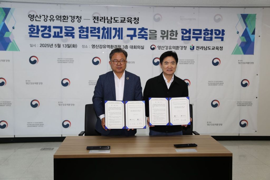 영산강유역환경청과 전남도교육청이 13일 '환경청-교육청 환경교육 협력체계 구축'을 위한 업무협약을 체결했다.
