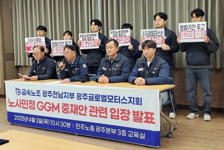 기자회견하는 전국금속노동조합 광주전남지부. 연합뉴스 제공