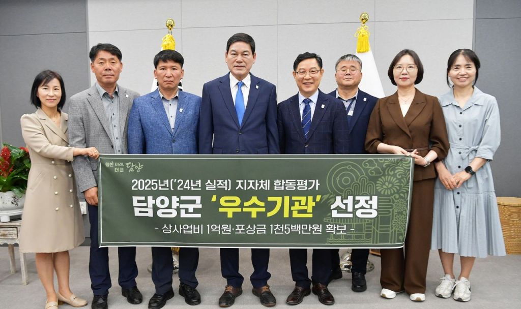 전남 담양군은 2025년 지방자치단체 합동평가(2024년 실적)에서 2년 연속 '우수기관'에 선정됐다고 13일 밝혔다.
