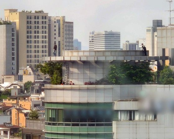 13일 오후 3시께 서울 지하철 2호선 강남역 인근 15층짜리 빌딩 옥상에서 한 남성이 투신 소동을 벌였다.