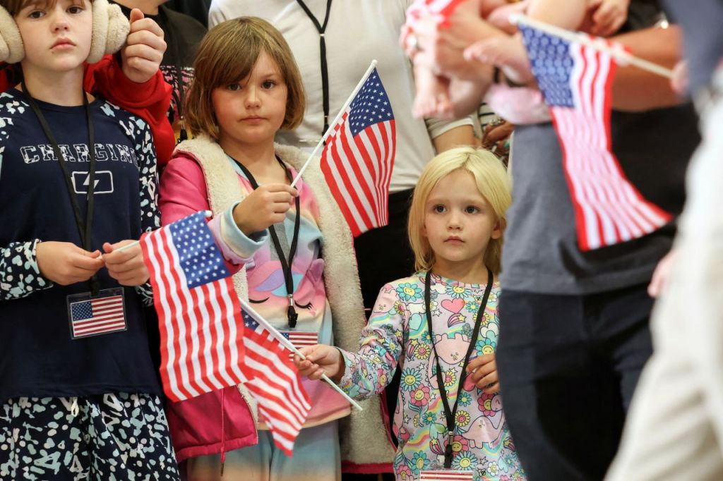 12일(현지시간) 미국 정부가 보낸 전세기를 타고 남아프리카공화국(남아공) 요하네스버그에서 미국 버지니아주 덜레스 국제공항에 도착한 남아공 출신 백인 가정 어린이들의 모습. 로이터연합뉴스