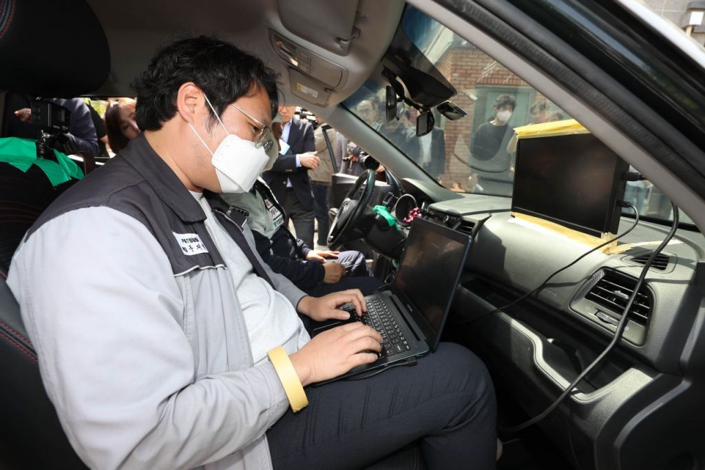 강원 강릉에서 2022년 12월 이도현(사망 당시 12세) 군이 숨진 차량 급발진 의심 사고와 관련해 차량의 결함에 의한 급발진 여부를 밝힐 '재연 시험'이 2024년 4월19일 오후 강릉시 회산로에서 진행됐다. 사고 차량과 같은 '2018년식 티볼리 에어' 차량에 카메라와 변속장치 진단기가 설치되고 있다. 연합뉴스