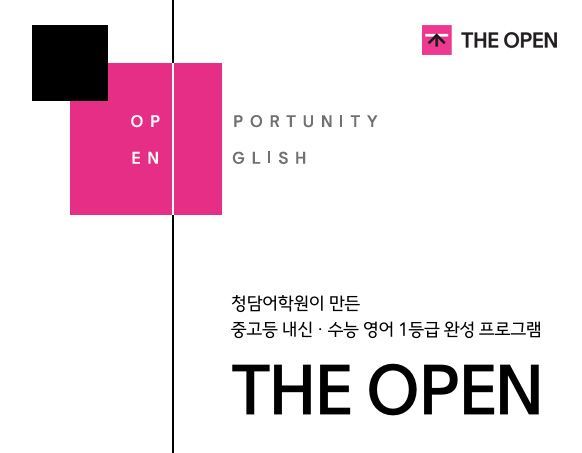 이처럼 'THE OPEN(디 오픈)'은 청담어학원이 ESL(English as a Second Language) 기반 영어 교육의 강점을 바탕으로, 국내 내신 및 수능 대비에 최적화된 커리큘럼을 통해 학습 효과를 극대화한 프로그램이다.
