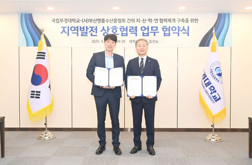 국립부경대학교(총장 배상훈)와 부산명품수산물협회(협회장 박용준)는 14일 오전 국립부경대 대학본부 3층 접견실에서 상호 협력 협약을 체결했다.