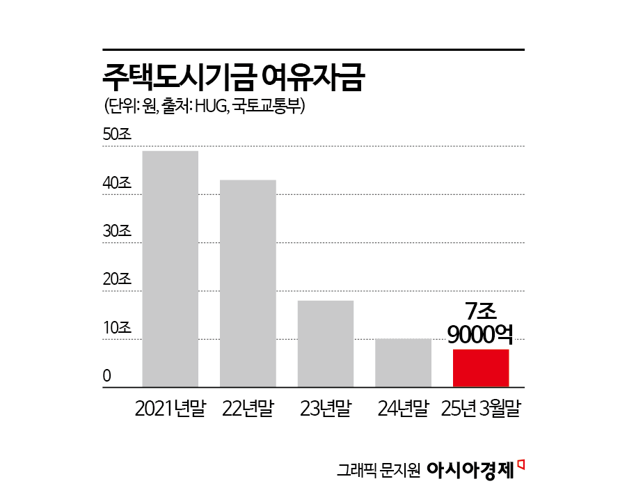 리츠 사업의 재원인 주택도시기금 여유자금은 2021년 49조원에서 올해 3월 7조9000억원까지 급감했다. 2010년 이후 15년 만에 처음 10조원이 붕괴됐다. 국민주택채권 발행 감소, 청약저축 납입 부진, 전세사기 피해 매입 지원 등 지출 확대가 복합적으로 영향을 미쳤다. 2022년 43조원, 2023년 18조원, 지난해 10조1000억원 등 갈수록 줄어들고 있다. 여유자금이 급감하면서 리츠 사업에 추가 출자할 여력도 사실상 소진된 상황이다.
