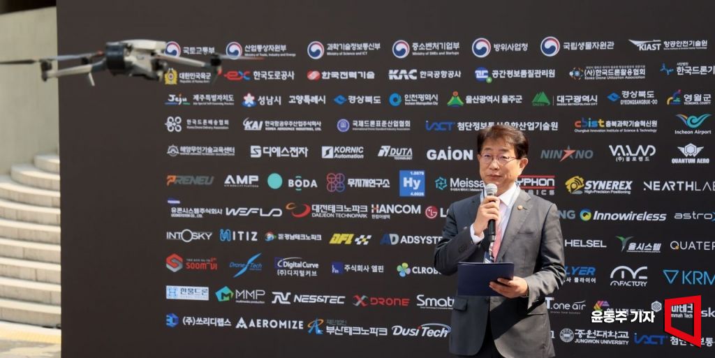 14일 서울 강서구 코엑스 마곡에서 열린 드론산업 얼라이언스 창립총회에 참석한 박상우 국토교통부 장관이 인사말을 하고 있다.