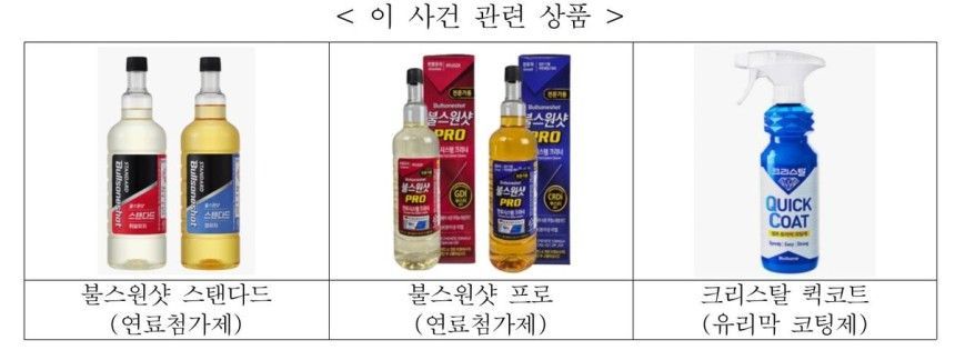 불스원이 판매 가격이나 방식을 통제한 제품들. 공정거래위원회 제공.