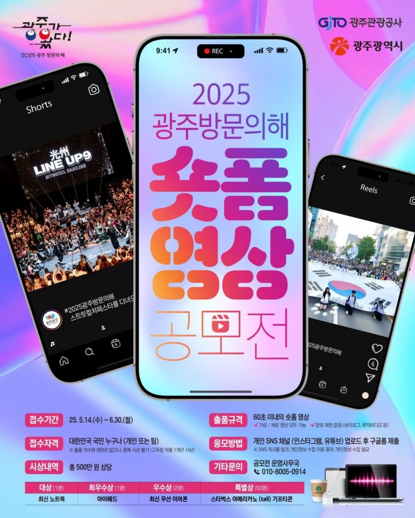 이번 공모전은 '2025 광주방문의 해', '5·18민주화운동' 등을 주제로 60초 이내의 짧고 강렬한 영상 콘텐츠를 제작, 광주의 매력을 효과적으로 알리기 위해 마련됐다.