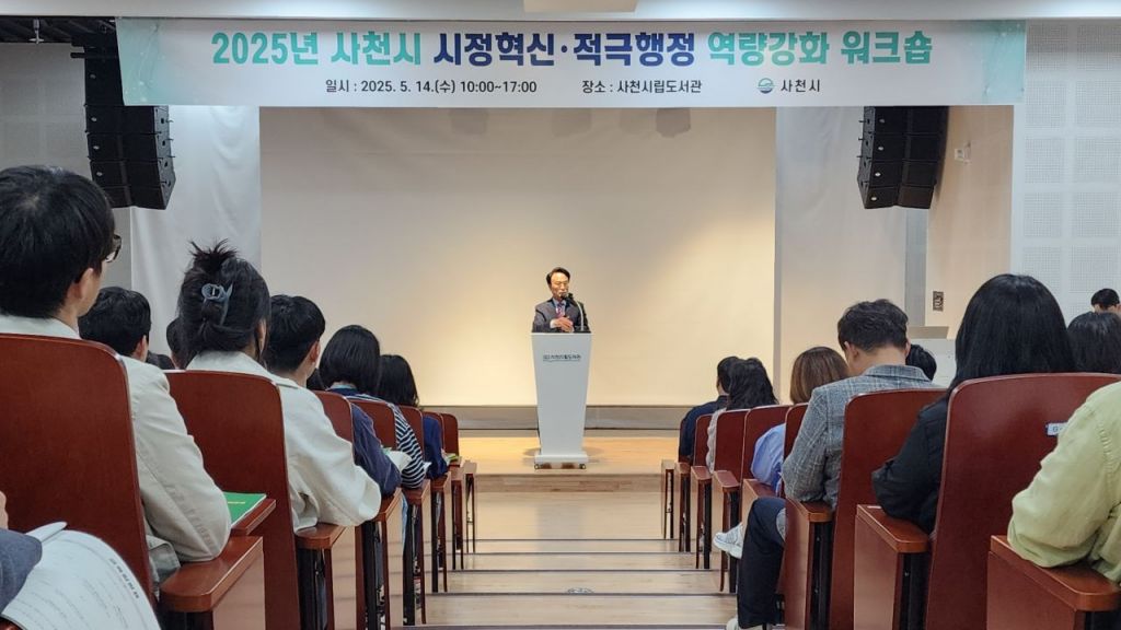 경남 사천시는 사천시립도서관 대강당에서 100여명의 직원이 참석한 가운데 '시정혁신·적극행정 역량강화 워크숍'을 개최했다.