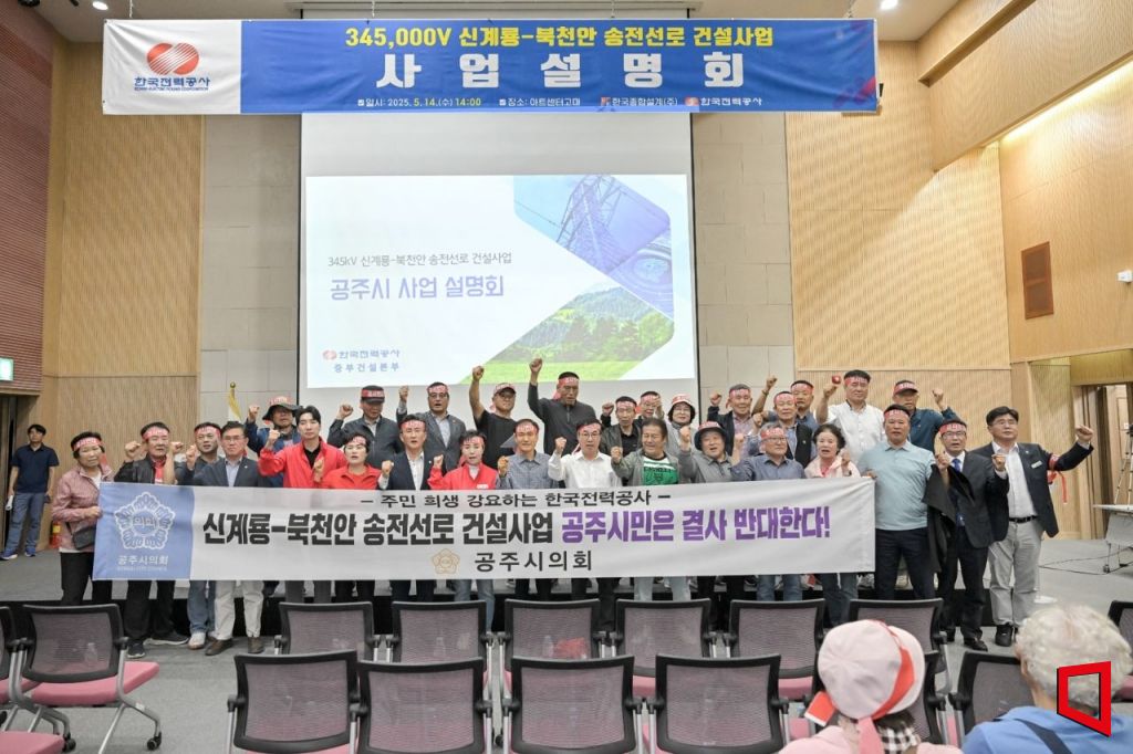 15일 시의회에 따르면 한국전력공사는 이날 신계룡-북천안 송전선로 건설 관련 주민설명회를 열 예정이었으나 공주시민 약 350여 명이 아트센터 고마 앞에 모여 사업 중단을 요구하는 집회를 열면서 설명회는 결국 무산됐다.